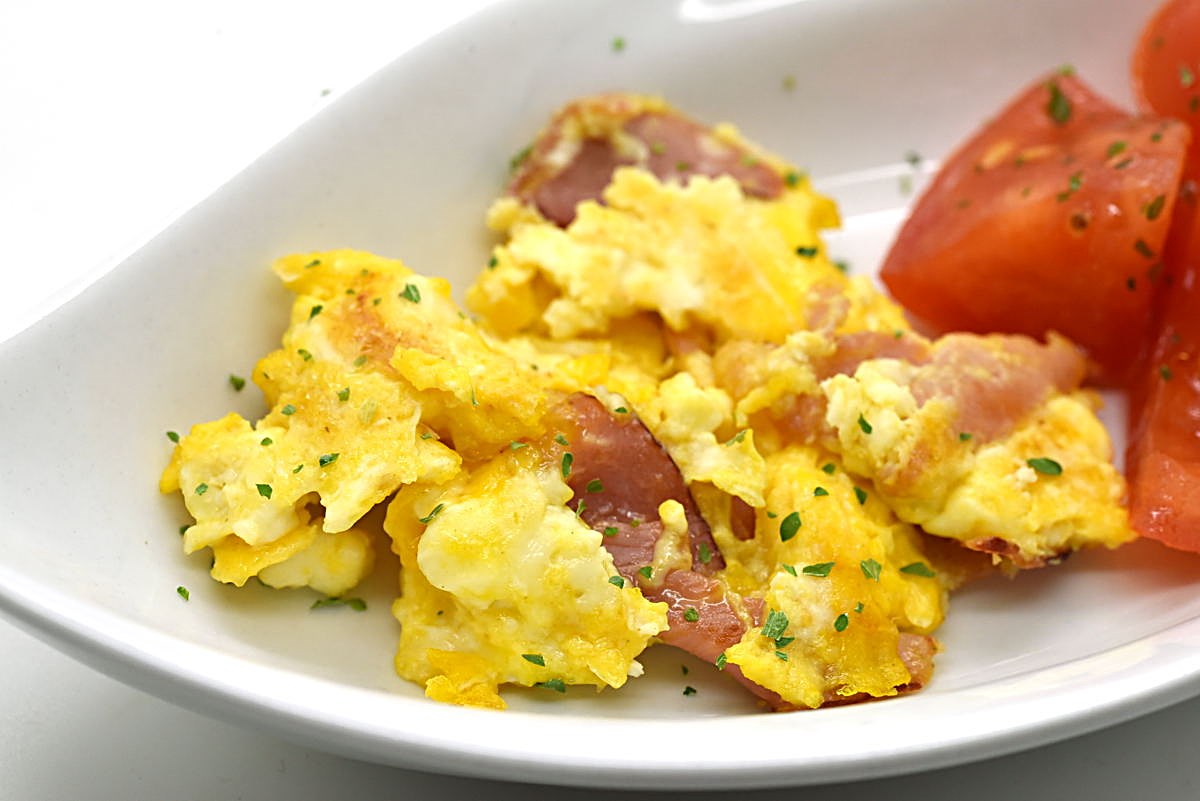 Rührei mit Schinken und Schafskäse
